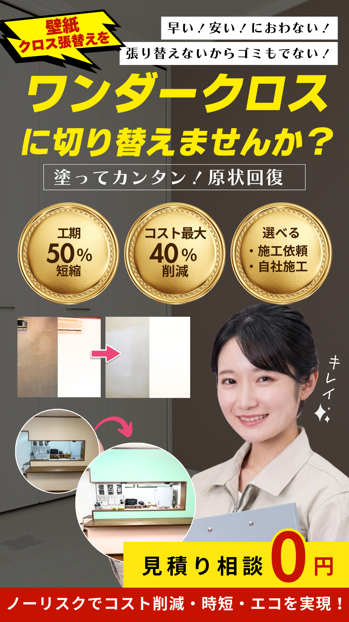 可能です。既存壁紙を剥がす手間が省け、 工期を大幅に短縮 できま す。壁紙の上からでも優れた密着性を発揮し、施工後の剥がれや浮きを 防止します。解体・廃棄コストも削減できる大きなメリットです。